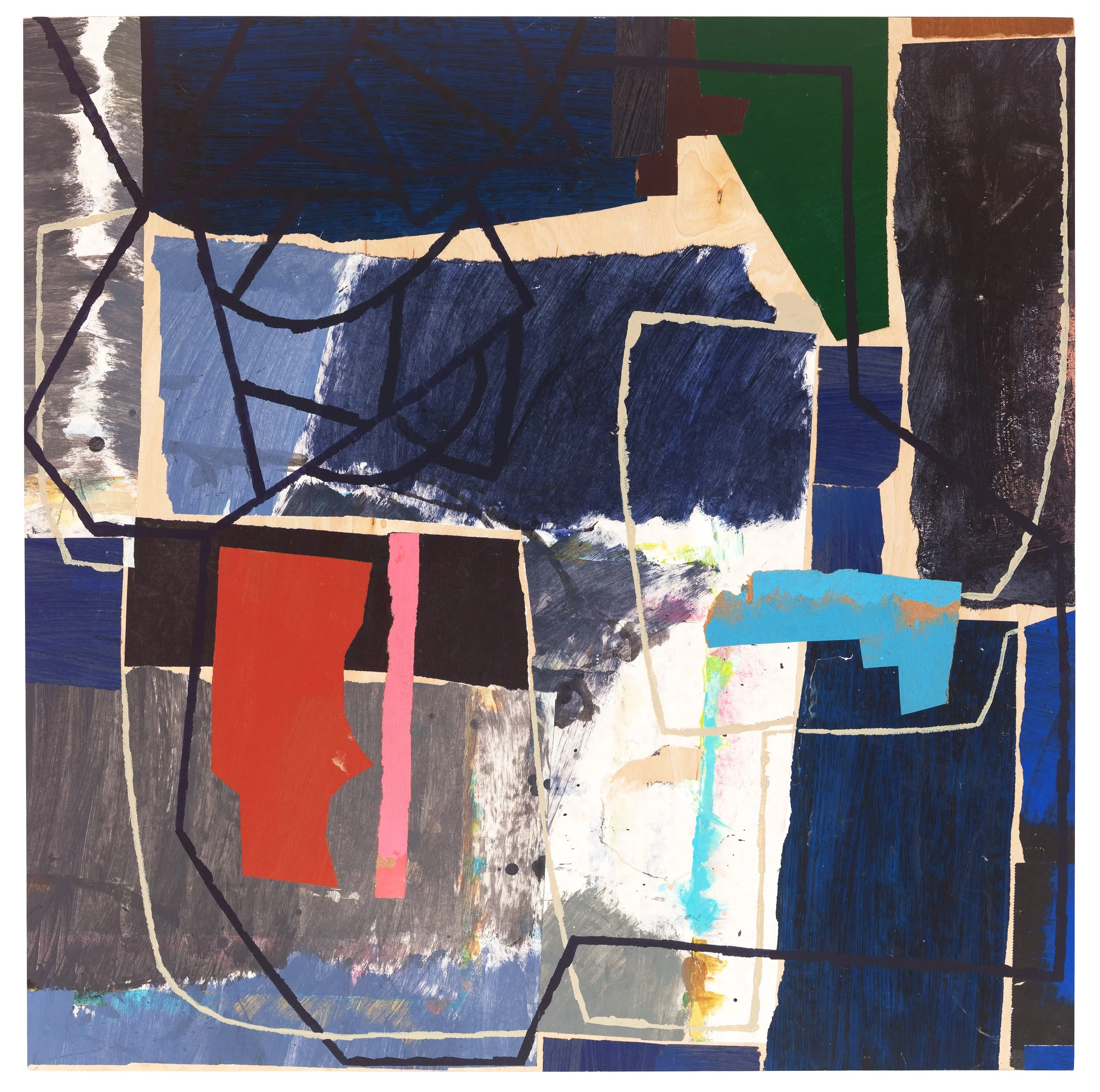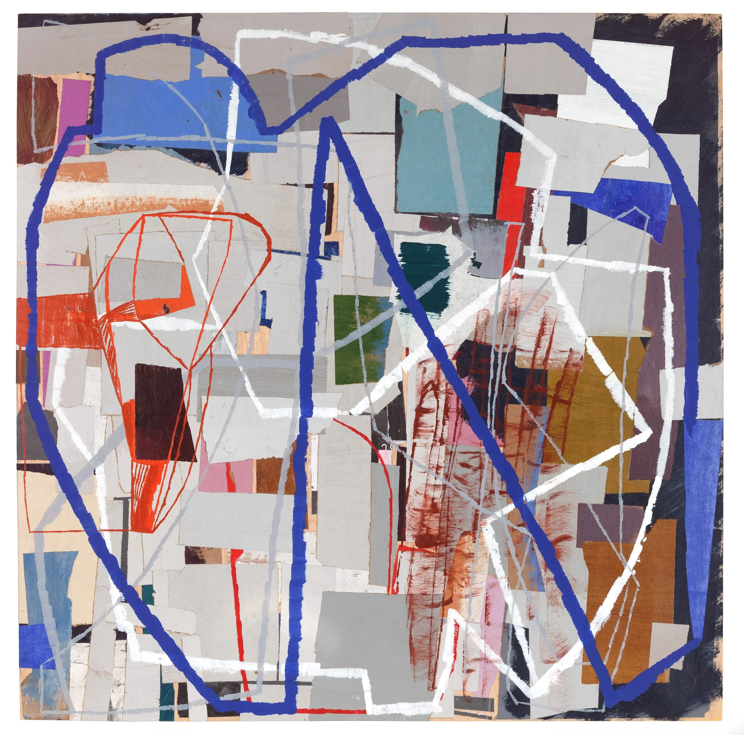 32”x 32” hand painited paper and acrylic on wood panel